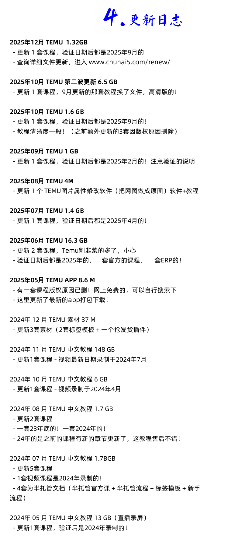 (更新记录删除,之前有4套,删掉了3套,懒得上详细目录了!目前只有一套日本TEMU的了!)