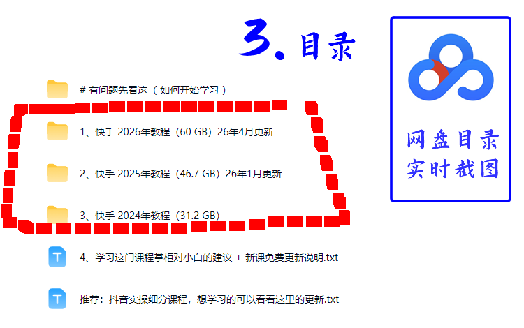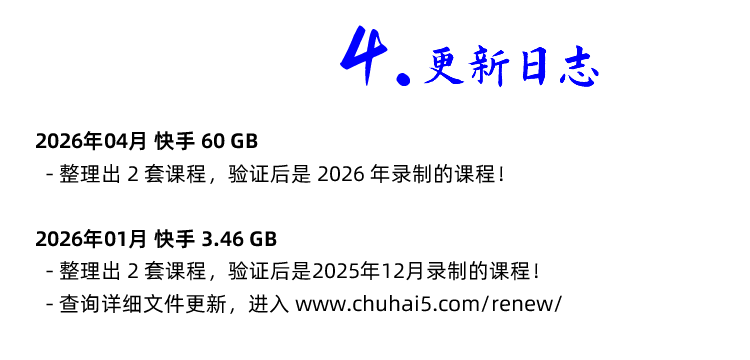 2026年开始 快手 新课 请自行去更新日志页面查询该课程每次对应的文件更新:
