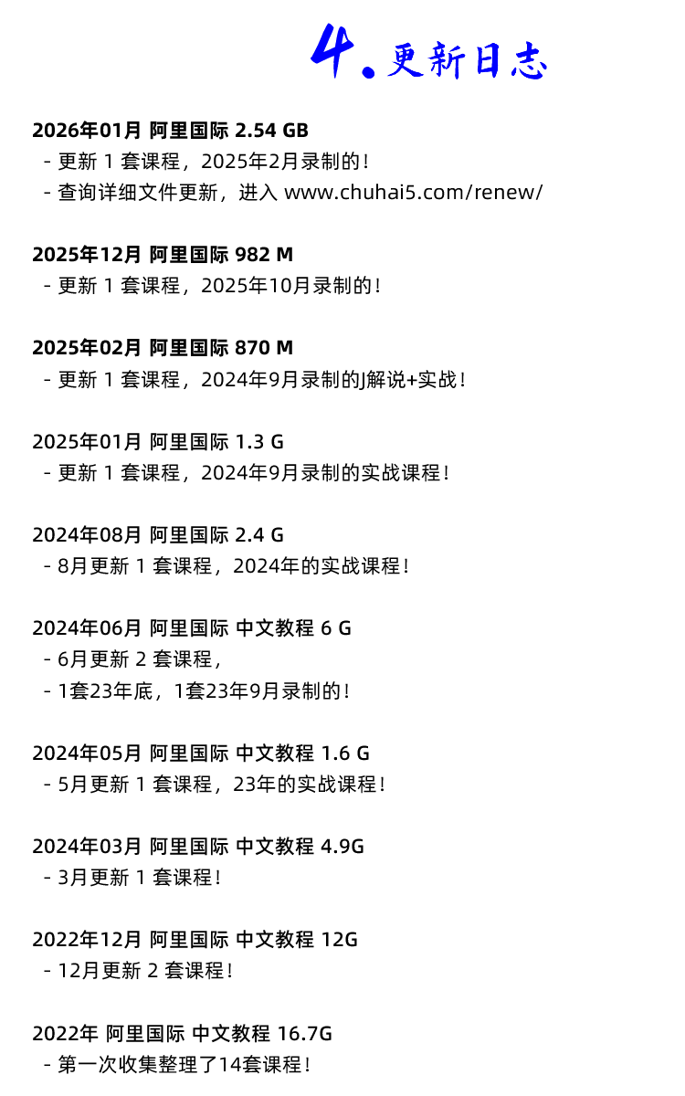 2026年开始 阿里国际 新课 请自行去更新日志页面查询该课程每次对应的文件更新: