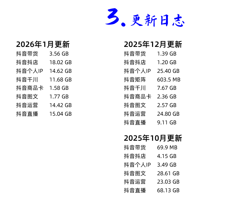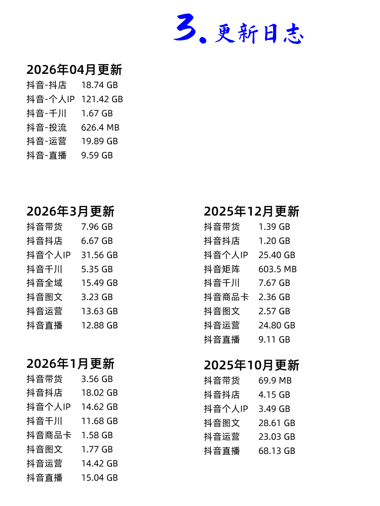 2026年开始 抖音全集 新课 请自行去更新日志页面查询该课程每次对应的文件更新: