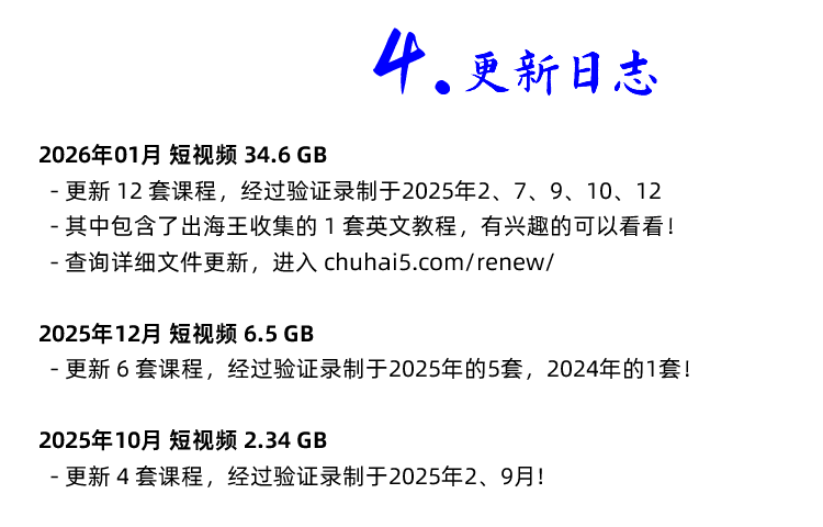 2026年开始 短视频运营 新课 请自行去更新日志页面查询该课程每次对应的文件更新: