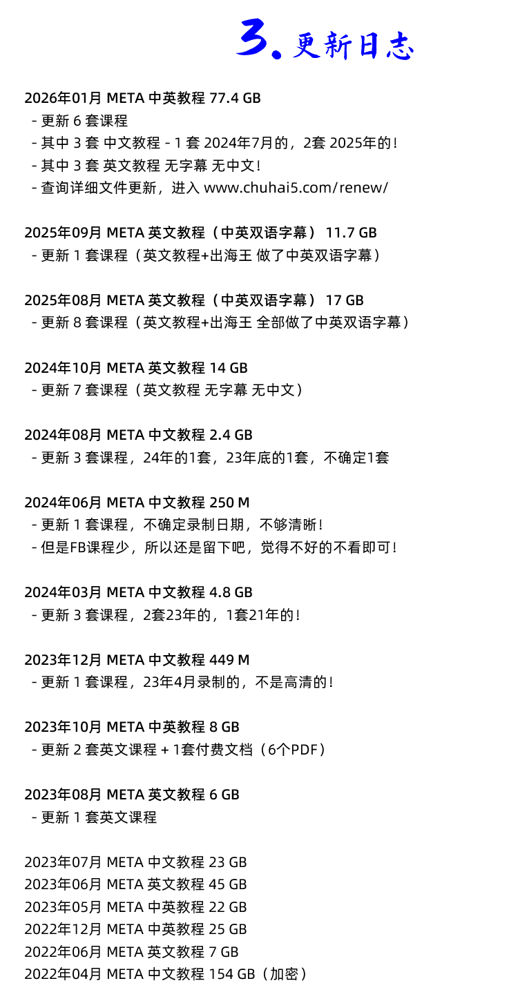 2026年开始 FACEBOOK/META ADS 新课 请自行去更新日志页面查询该课程每次对应的文件更新: