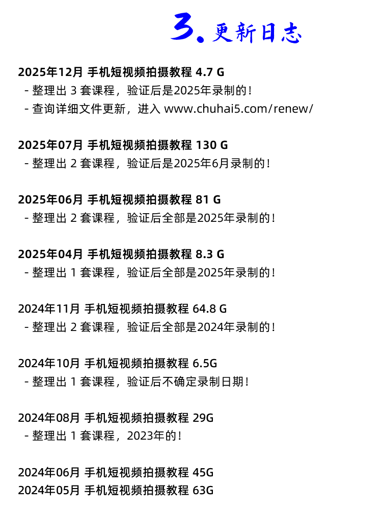 2025年 12 月更新手机短视频拍摄教程! # 2025年12月 手机摄影 4.7 G 点击查看详细更新记录 # 2025年07月 手机摄影 130 G 点击查看详细更新记录 # 2025年06月 手机摄影 81 G 点击查看详细更新记录 # 2025年04月 手机摄影 8.4 G 点击查看详细更新记录 2024年5月第一次整理更新!删掉了几百GB才选了这60多GB! 隐藏内容此处内容需要权限查看普通5金币永久会员免费推荐 购买本内容 收藏 海报 链接