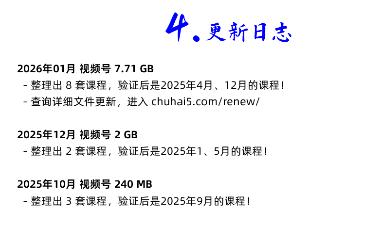 2026年开始 视频号 新课 请自行去更新日志页面查询该课程每次对应的文件更新: