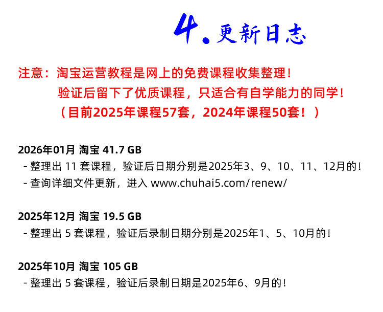 2026年开始 淘宝运营 新课 请自行去更新日志页面查询该课程每次对应的文件更新:
