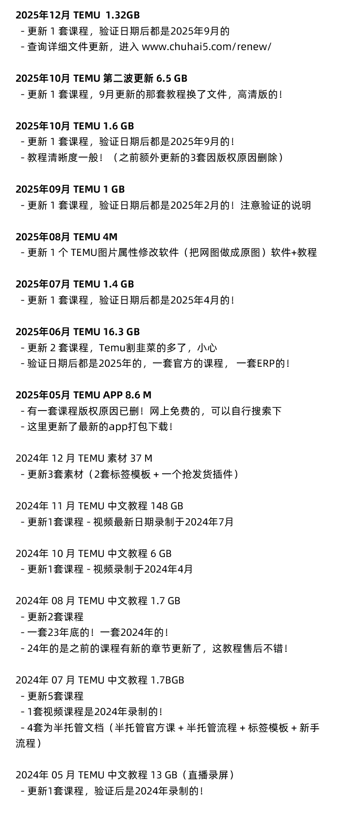 2026年开始 TEMU 新课 请自行去更新日志页面查询该课程每次对应的文件更新: