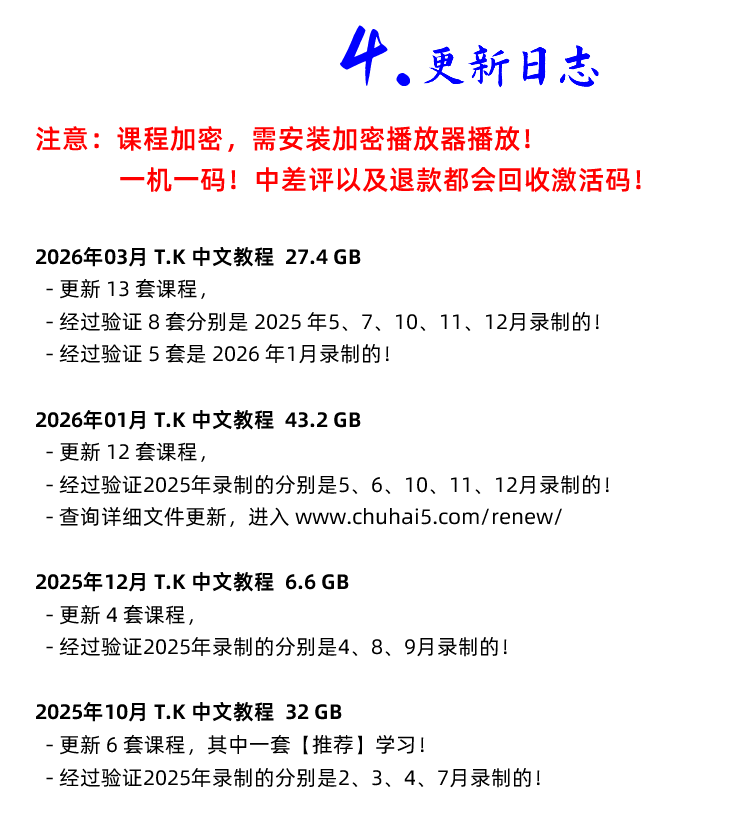 2026年开始 TIKTOK 新课 请自行去更新日志页面查询该课程每次对应的文件更新: