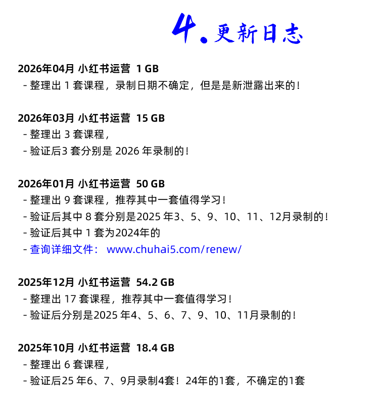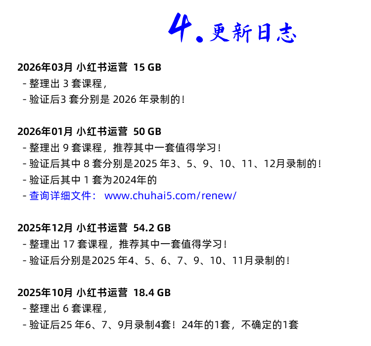 2026年开始 小红书 新课 请自行去更新日志页面查询该课程每次对应的文件更新: